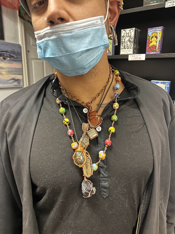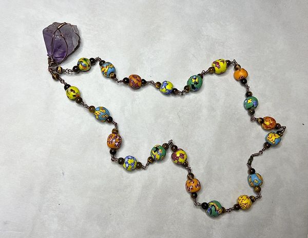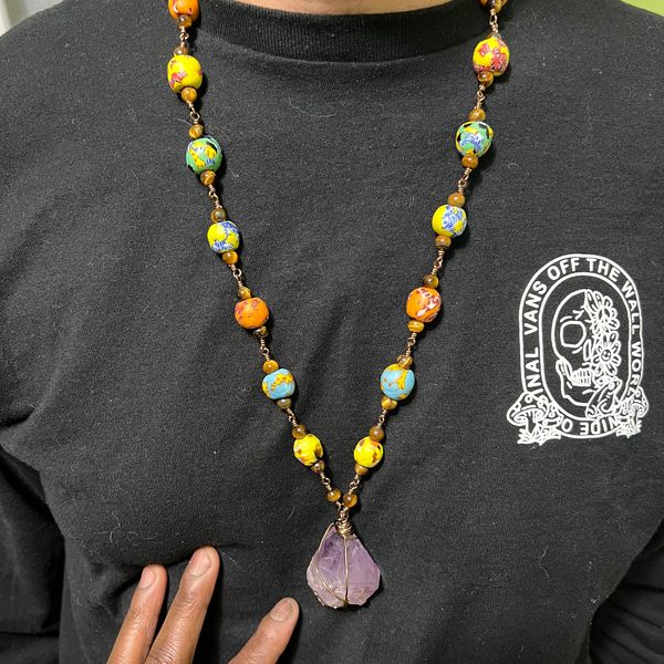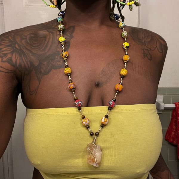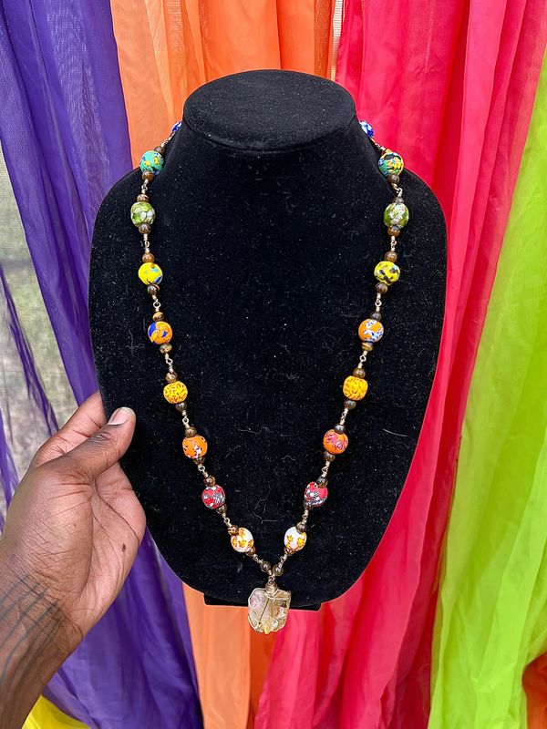 Custom Ghanian Rainbow beaded Oya Energy protection necklace with Citrine.