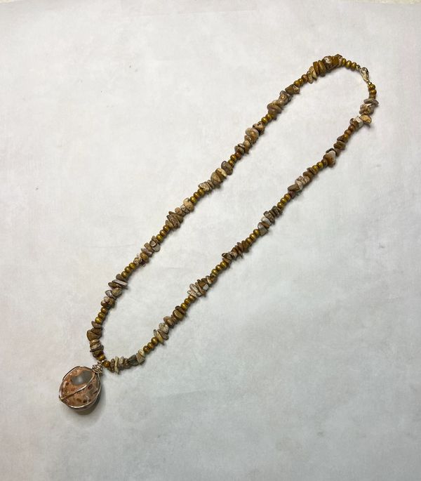Custom Leopard Skin Jasper and wood beaded necklace