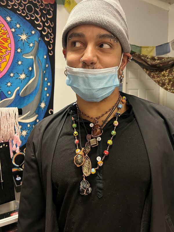 Custom Ghanian beaded Oya Energy protection necklace with Black Tourmaline.