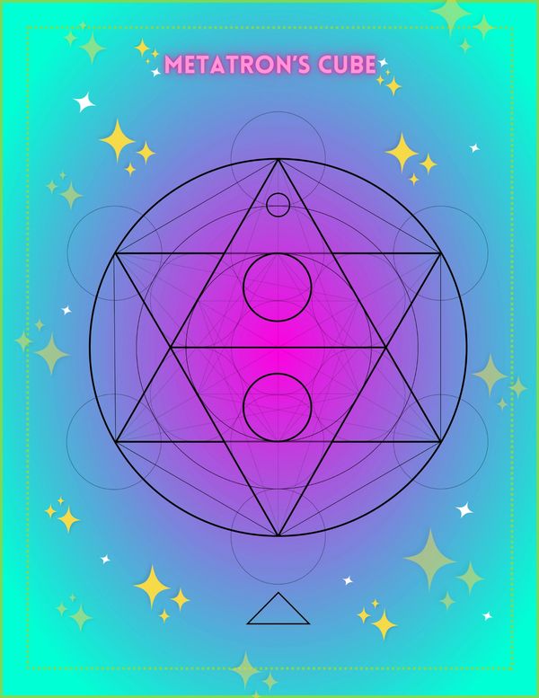 Known as an active spell, the Metatron’s Cube is a sacred geometric figure that maps out the very blueprint of creation ✨. This intricate design, composed of circles, lines, and triangles, has been revered across centuries and cultures, used in various religious and spiritual practices to understand the self and the universe. The figure is often associated with Archangel Metatron, a powerful figure in the heavenly hierarchy. According to myth, Metatron was chosen by God to scribe the Word of God before his disappearance, and he served as a guardian of heavenly secrets.